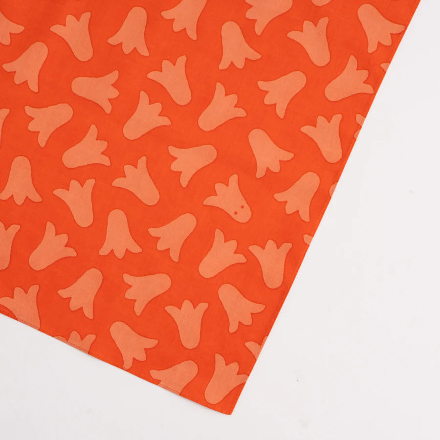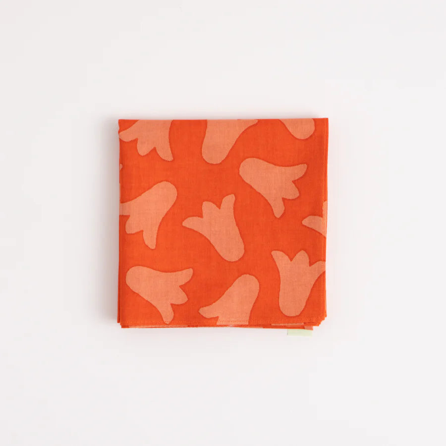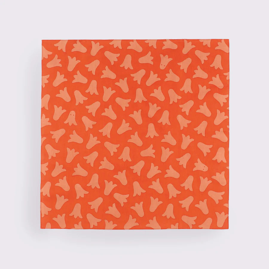 お弁当を包むのにちょうど良い小風呂敷です。色とりどりの食べ物の形を生かした素朴な文様は、お弁当をおいしく見せてくれます。薄手で結びやすい綿生地に、裏表が目立ちにくい染め方でプリントしています。