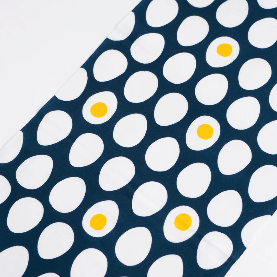 美しいたまごの形を生かした印象的な紋様。半分に割ったたまごの黄身がアクセントになっています。