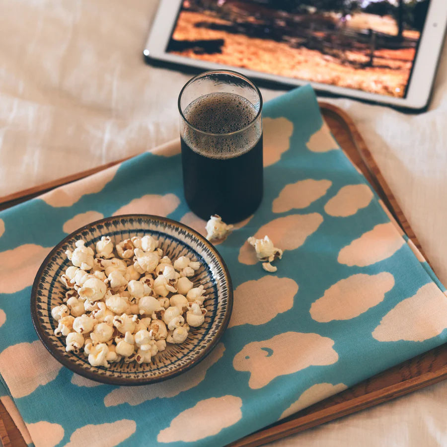 秋の空にふわふわと漂う羊の群れのような雲や、澄んだ秋の空気を思わせる情緒感たっぷりな色合いは、ハイキングや旅行など行楽時のお供に。お部屋ではちょっとしたランチョンがわりや、ぐっすり眠れるお守りとして枕カバーとしてもおすすめです。