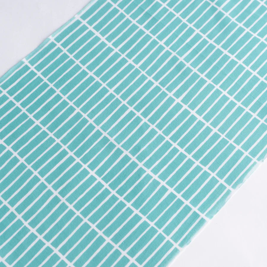 レトロなタイルをイメージしたシンプルな格子文様。清潔感があるのでキッチンや食卓に敷いたり、写真を撮る背景として使ったりしやすい一枚です。シンプルながらゆらぎのある連続模様で飽きのこないてぬぐいです。