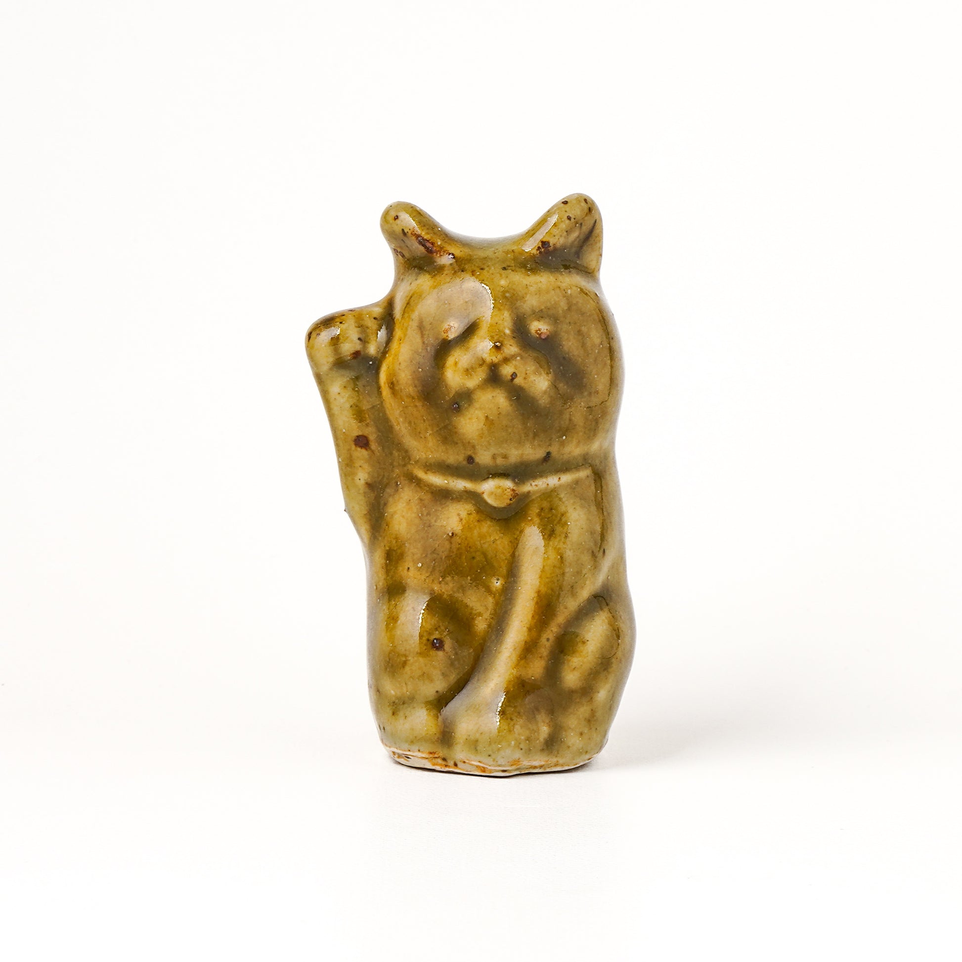 右手を挙げて幸運を招く姿が愛らしい置き物です。