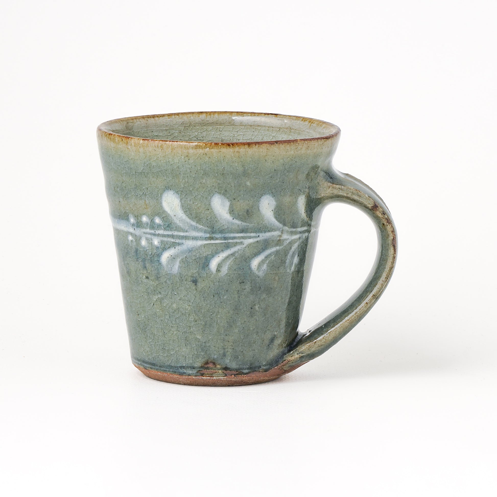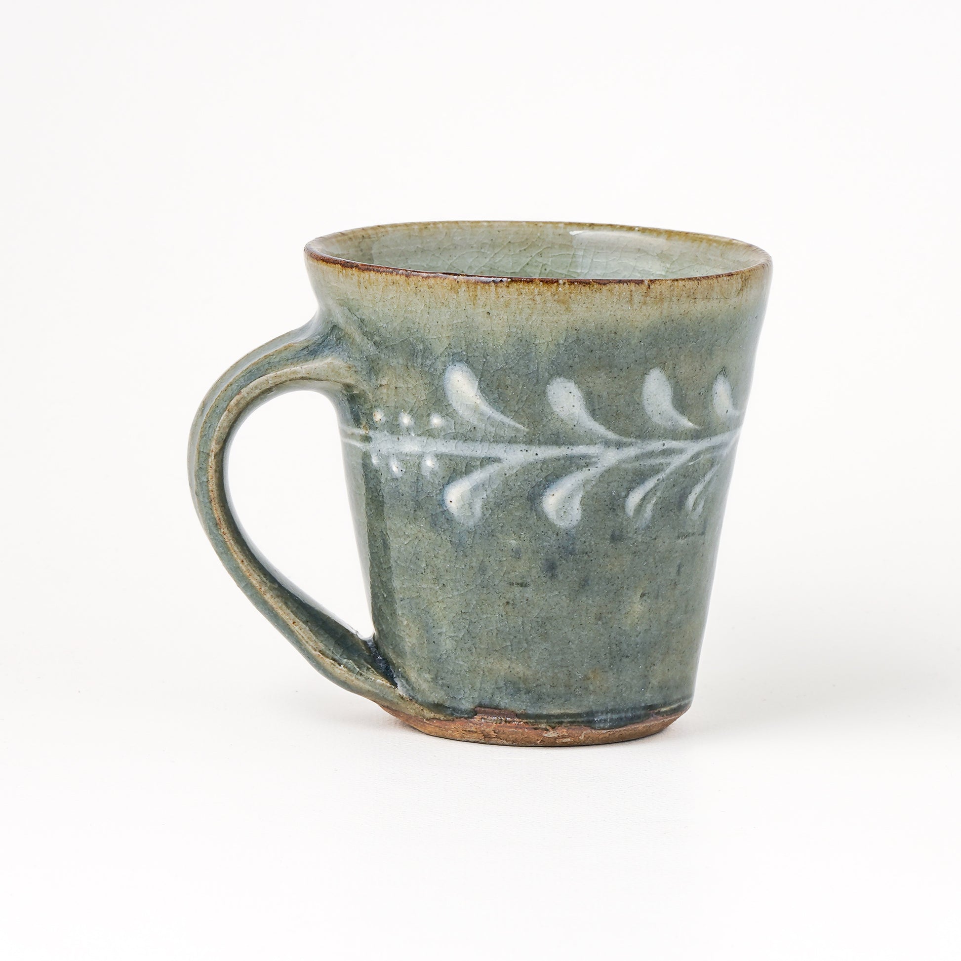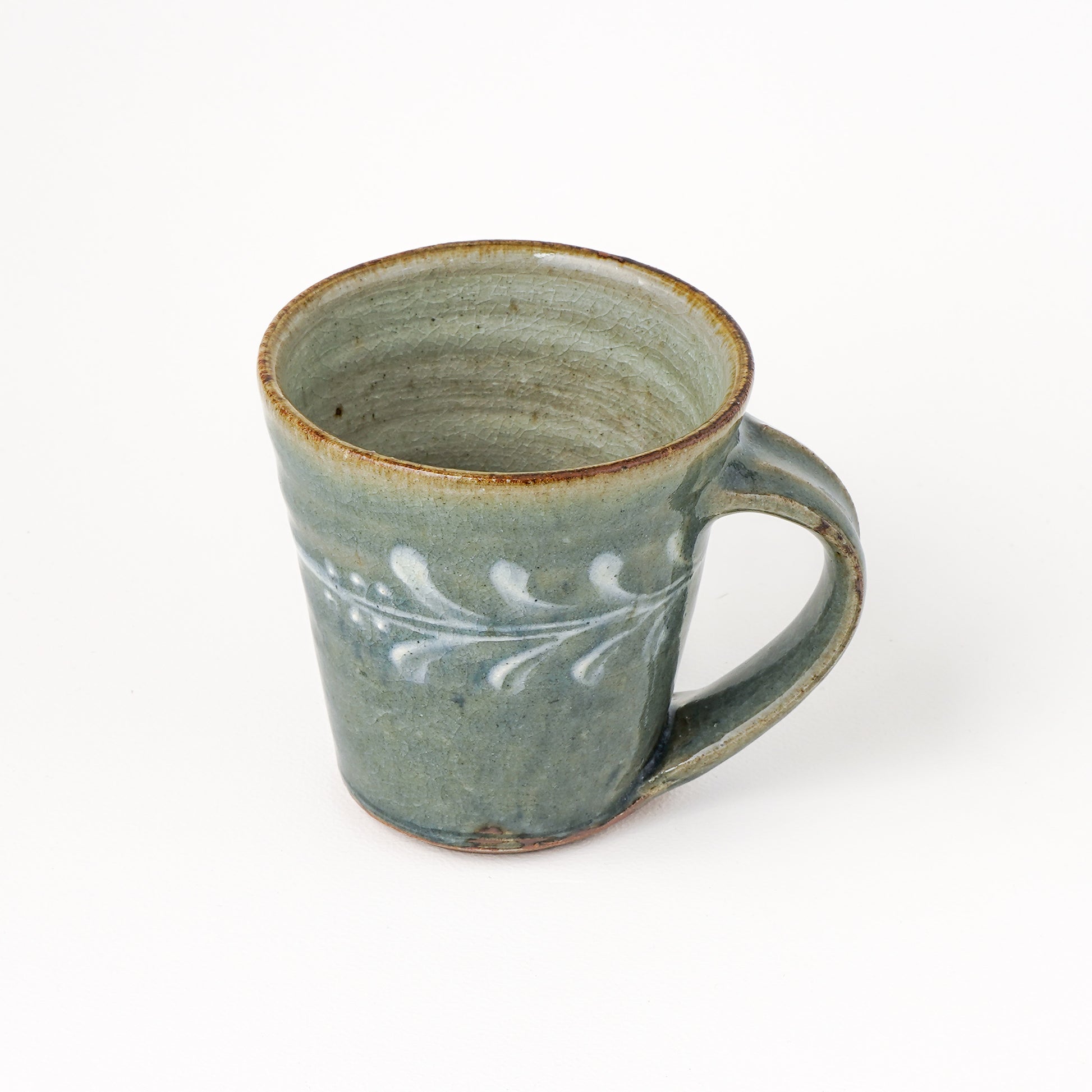 すっきりとしたフォルムに上品で華やかなイッチン模様のマグカップ。