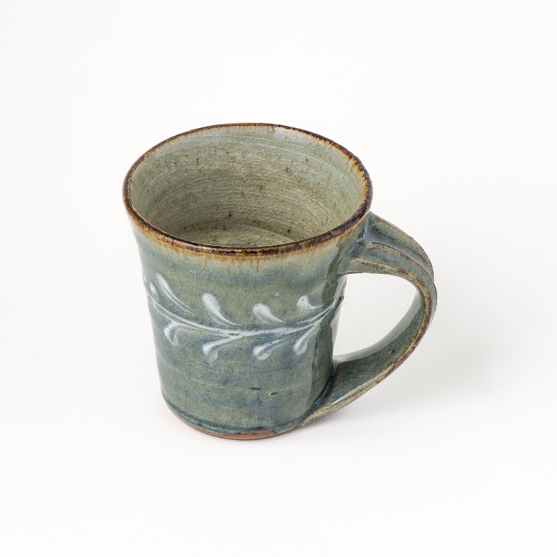 すっきりとしたフォルムに上品で華やかなイッチン模様のマグカップ。