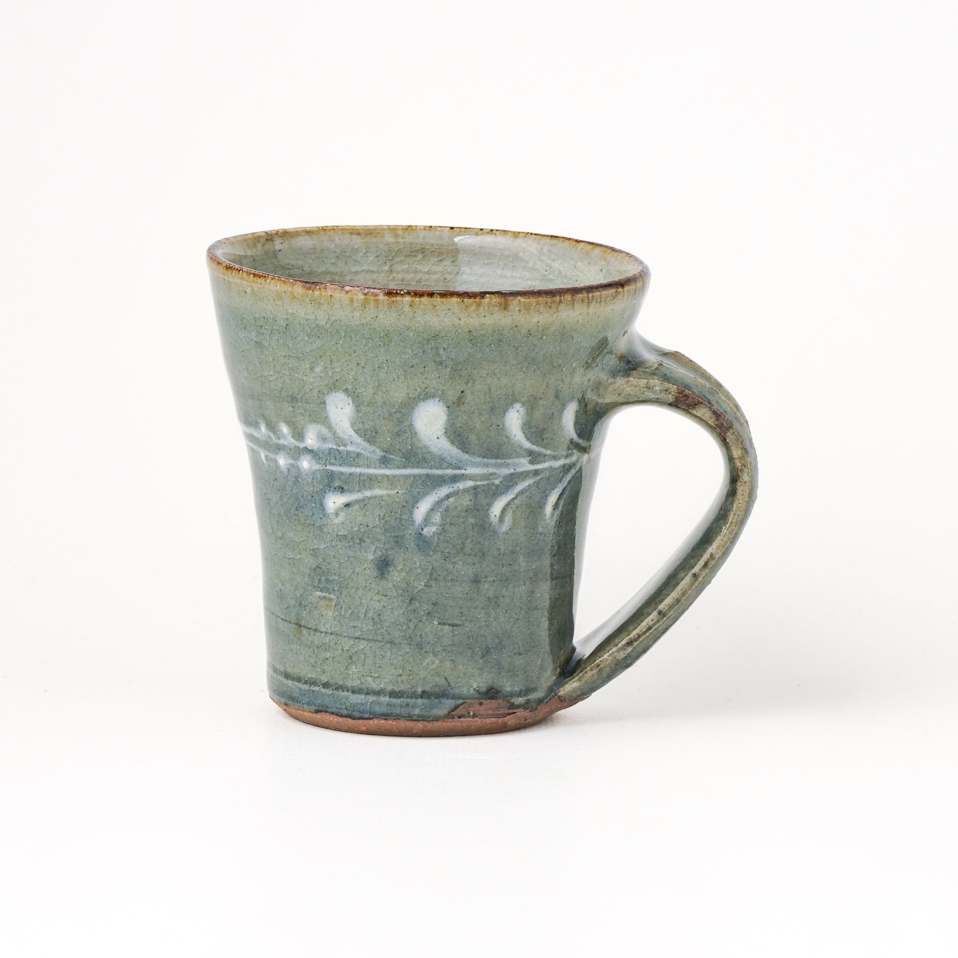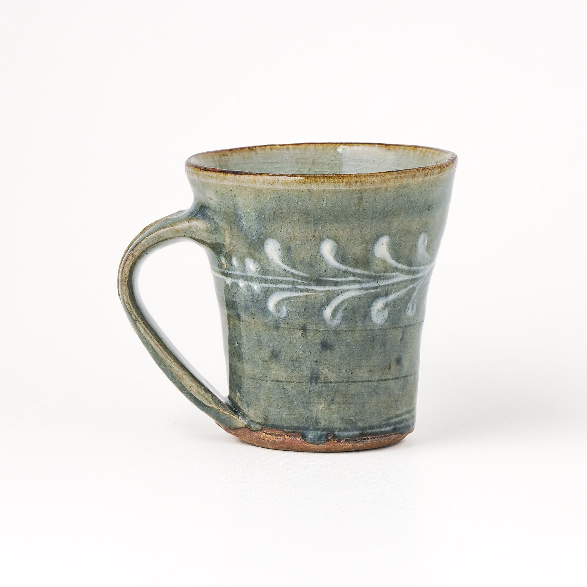 すっきりとしたフォルムに上品で華やかなイッチン模様のマグカップ。