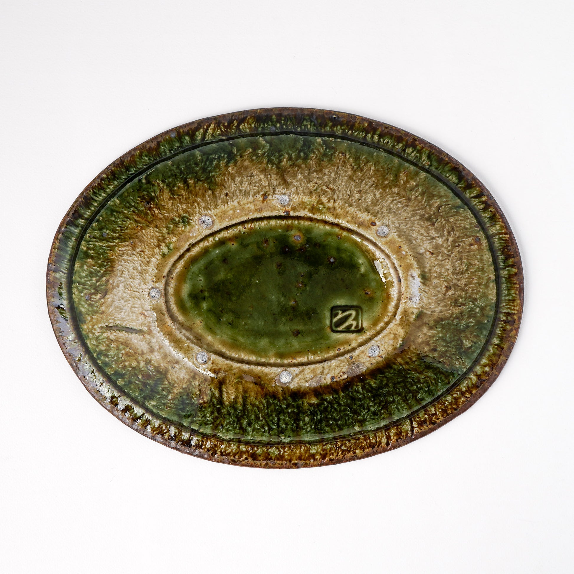 大沼道行 オーバル皿 M(約20cm×約27cm) 織部 B