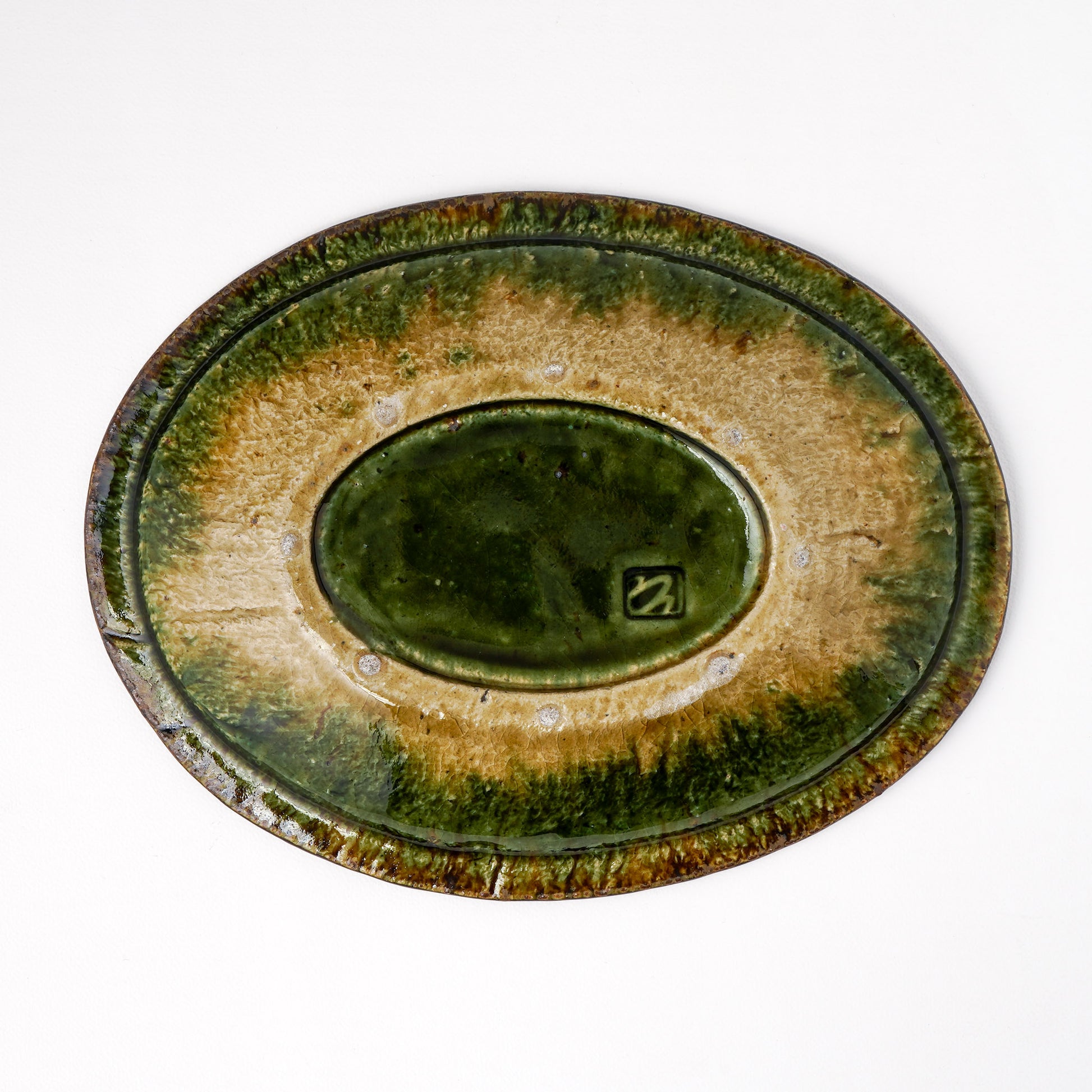 大沼道行 オーバル皿 M(約20cm×約27cm) 織部 C