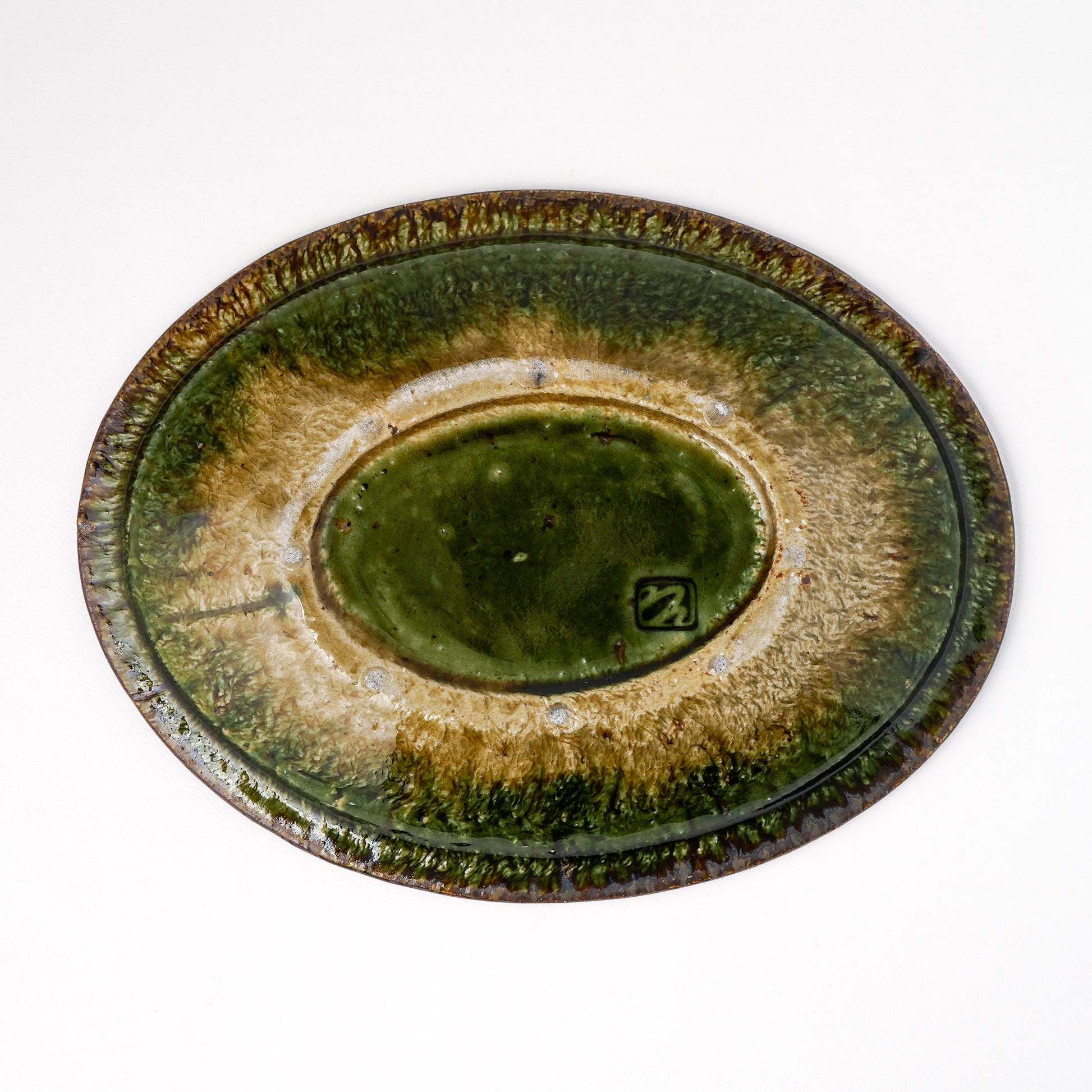 大沼道行 オーバル皿 M(約20cm×約27cm) 織部 D