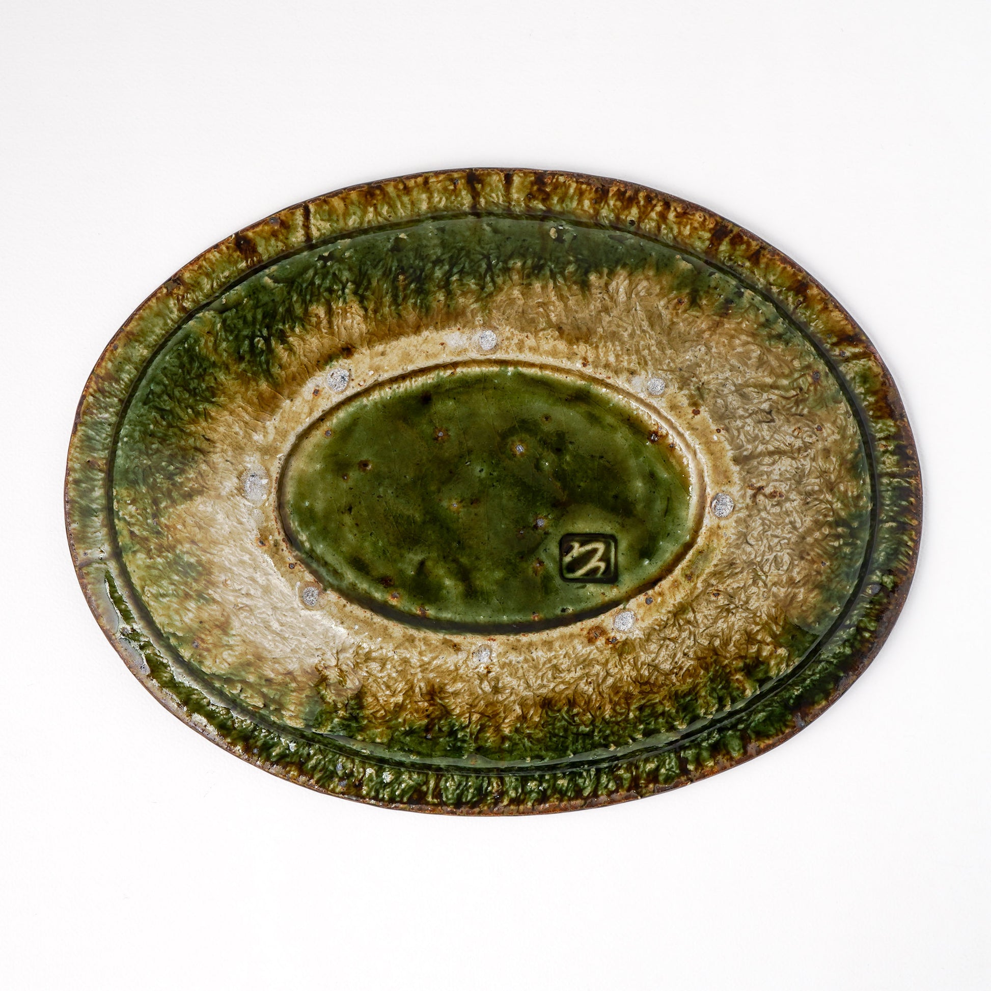 大沼道行 オーバル皿 M(約20cm×約27cm) 織部 G