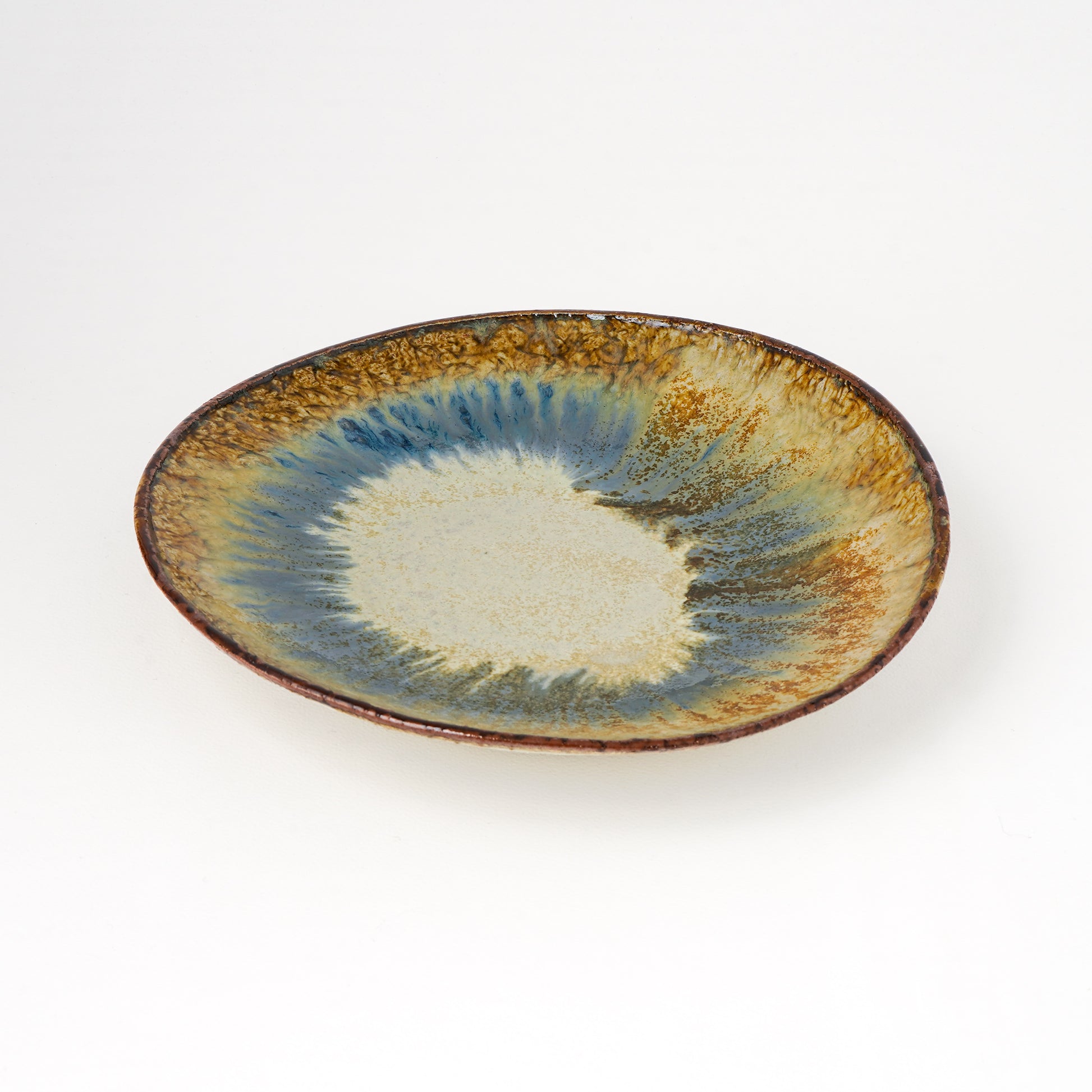 タタラ丸皿 約21cm 二彩 I