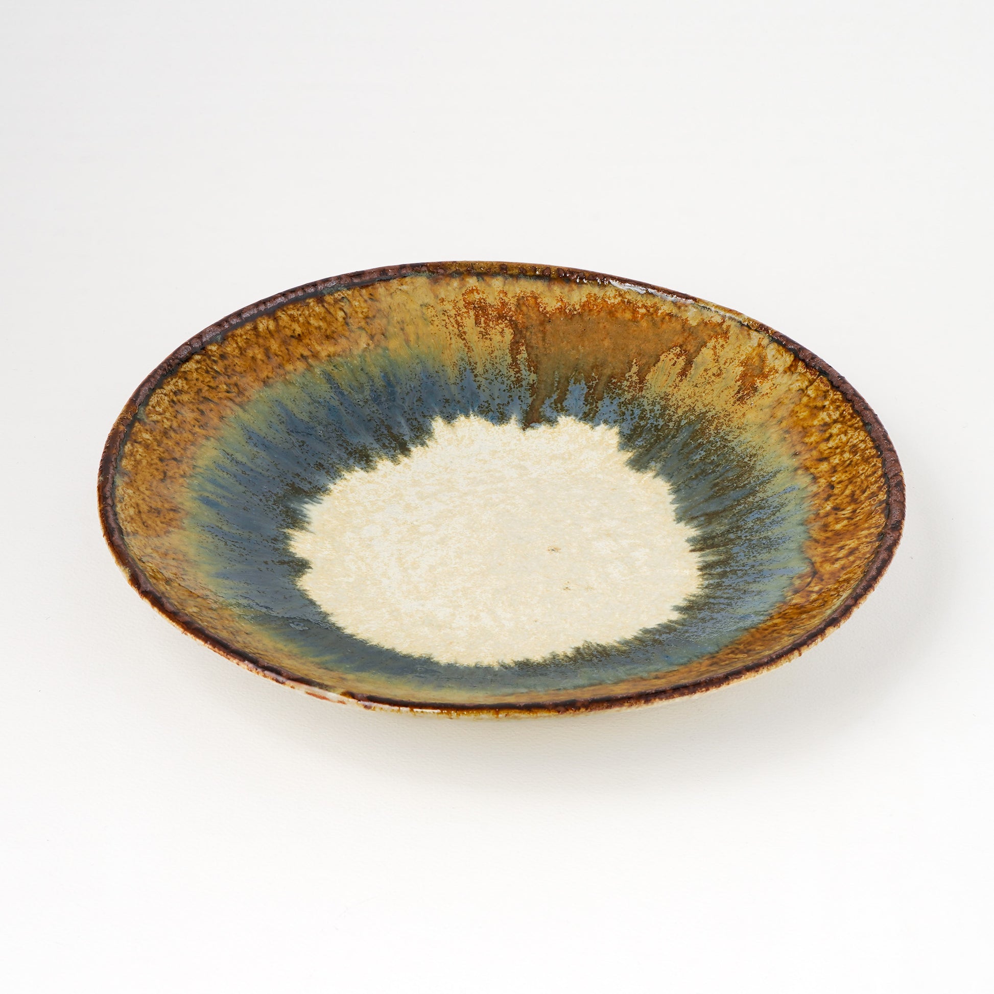 大沼道行 タタラ丸皿 約21cm 二彩 K