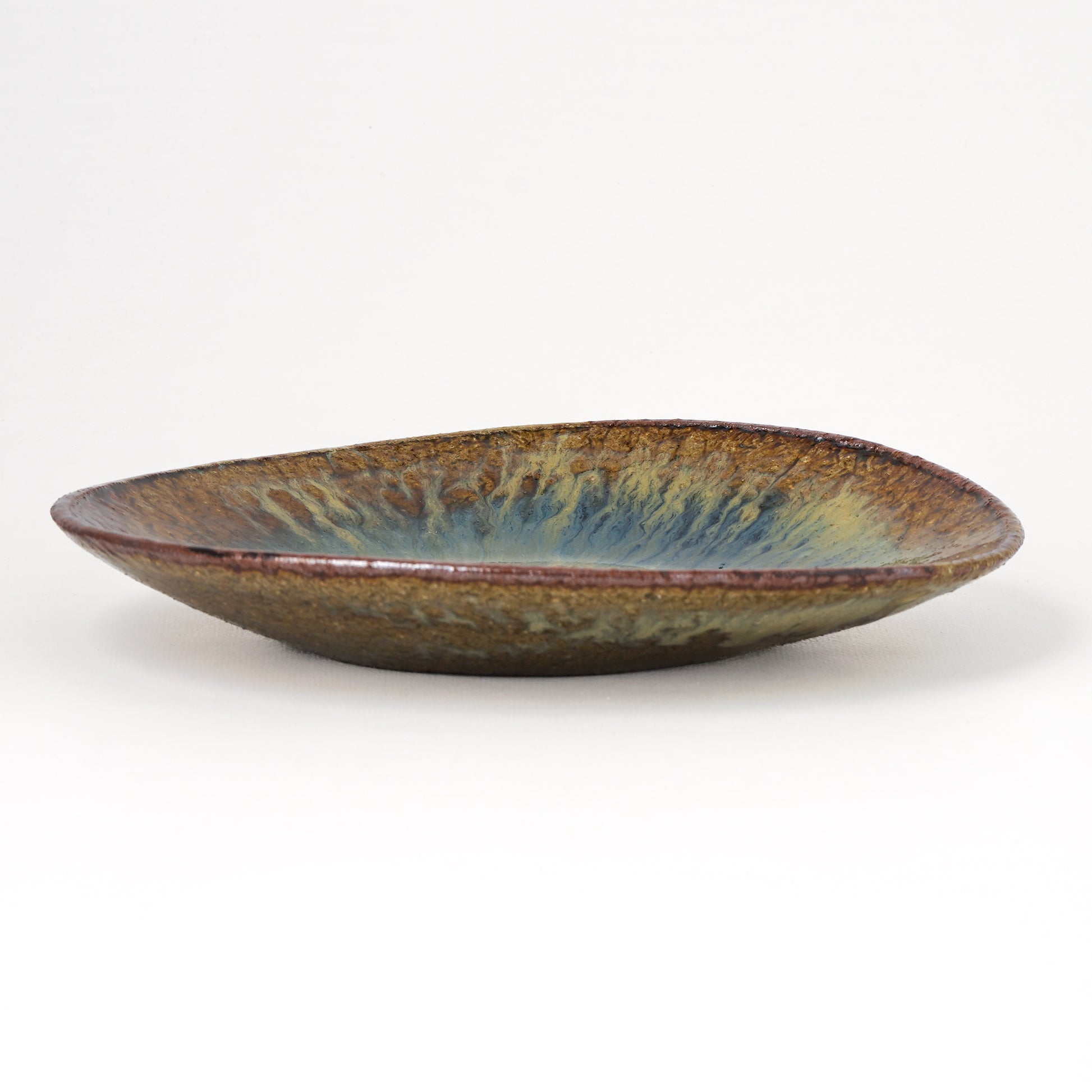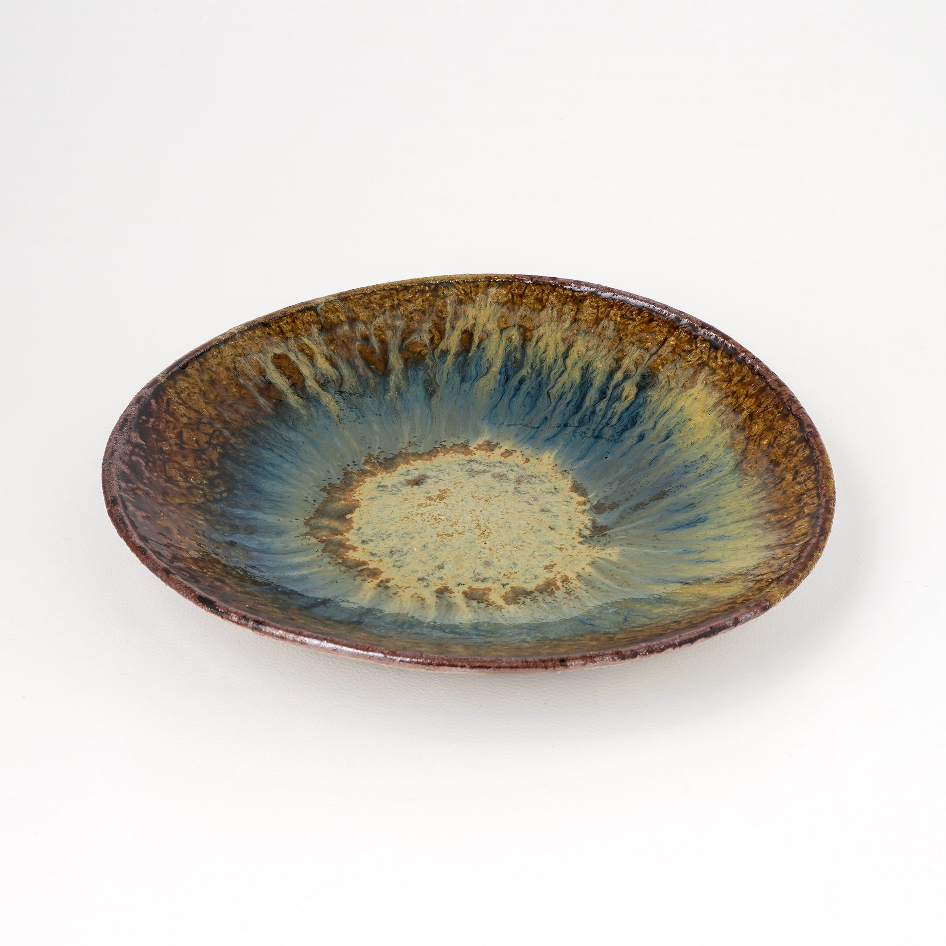 大沼道行 タタラ丸皿 約21cm 二彩 W