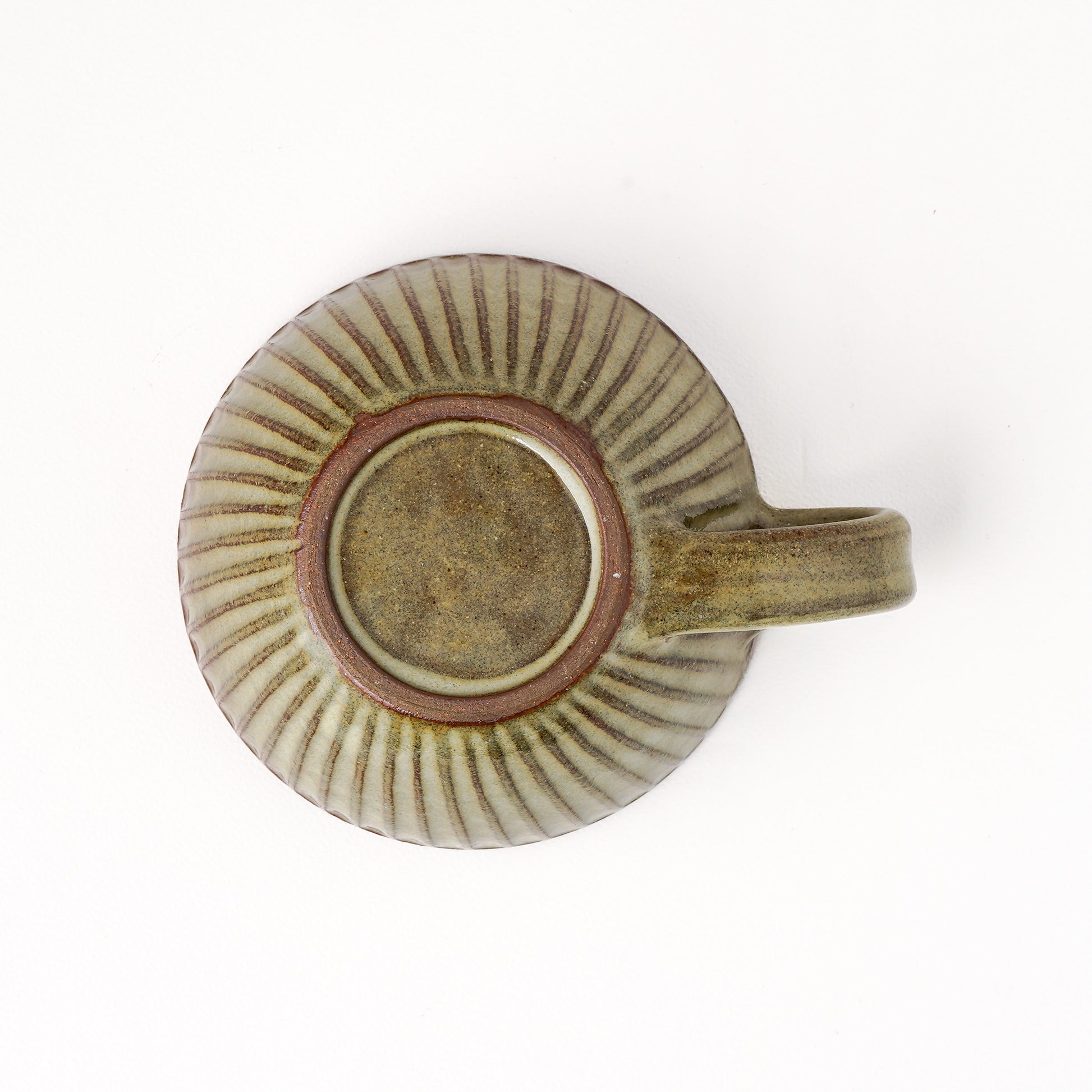 釉薬の濃度や窯の中での酸素量など、その時々の状況で焼き上がりの色がグレーやクリーム色、また黄味がかった白など一点一点違った表情を愉しむことができます。