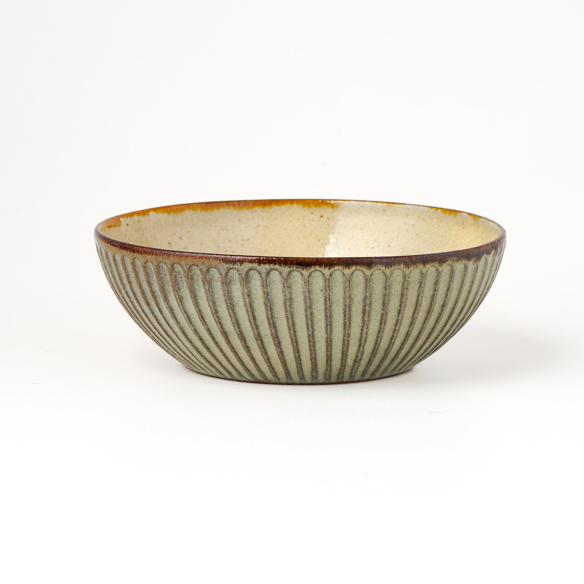 釉薬の濃度や窯の中での酸素量など、その時々の状況で焼き上がりの色がグレーやクリーム色、また黄味がかった白など一点一点違った表情を愉しむことができます。