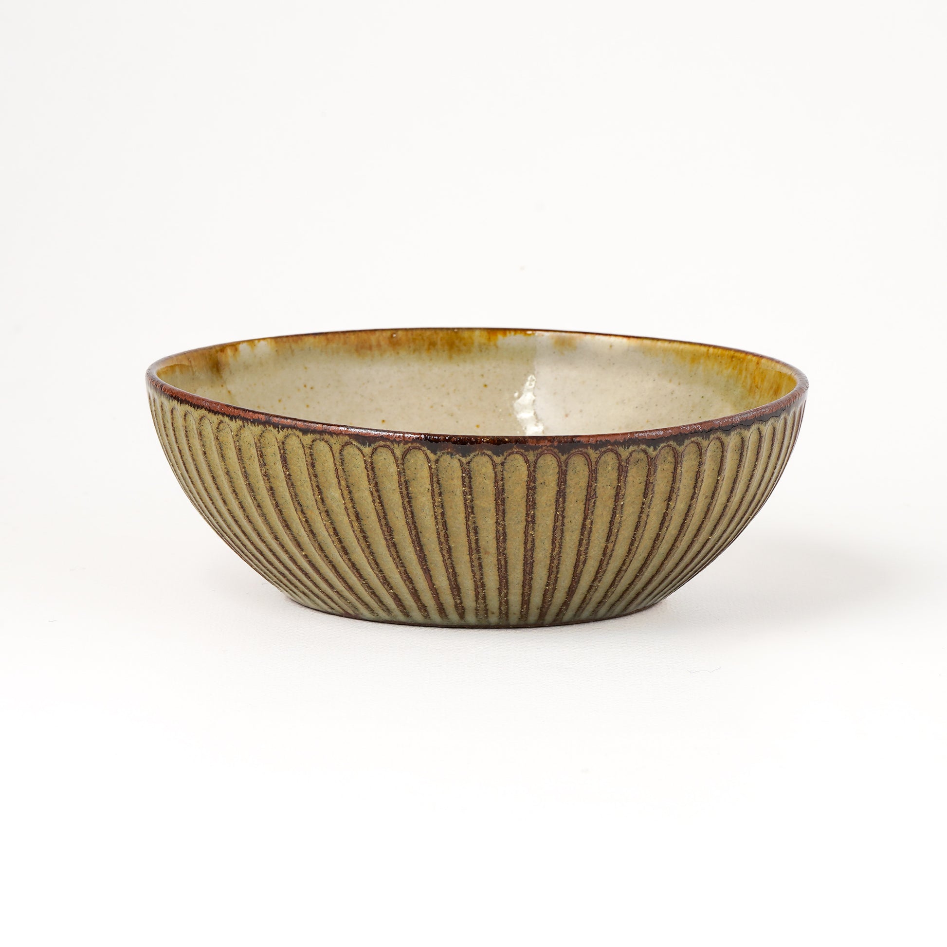 釉薬の濃度や窯の中での酸素量など、その時々の状況で焼き上がりの色がグレーやクリーム色、また黄味がかった白など一点一点違った表情を愉しむことができます。