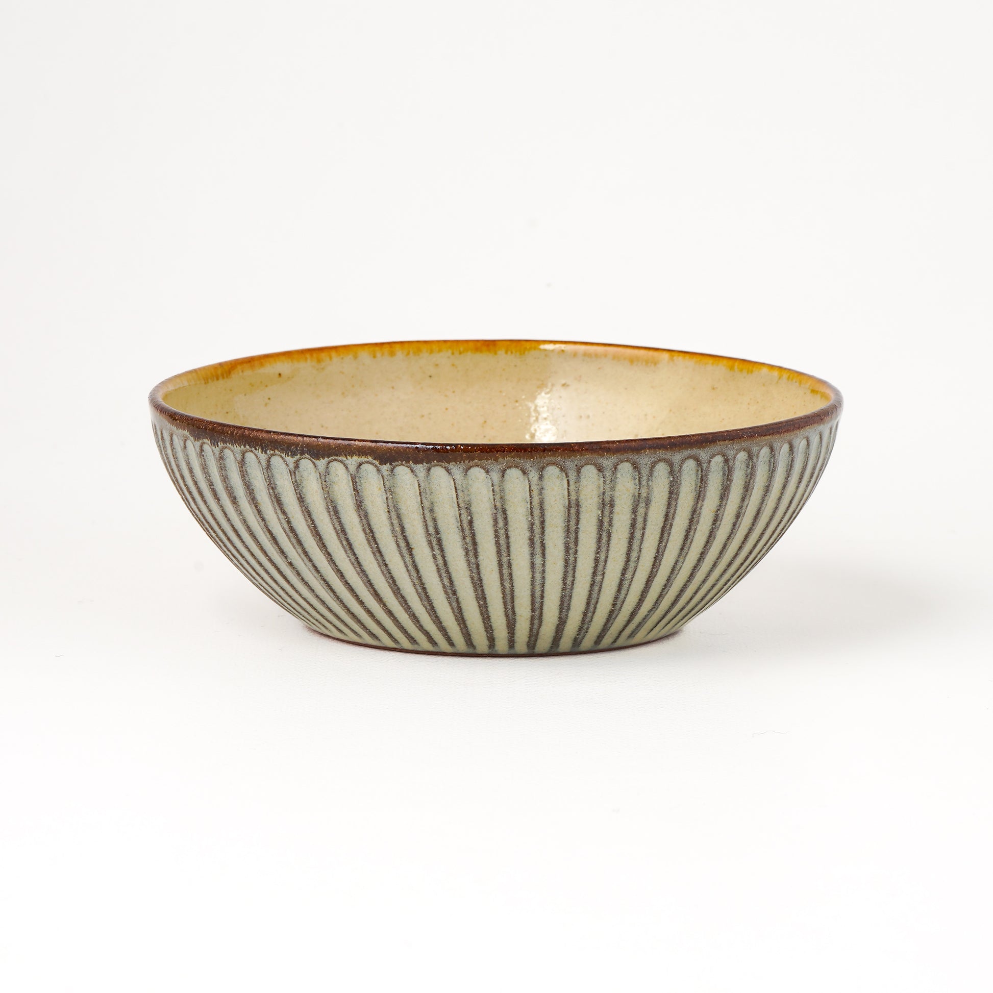 釉薬の濃度や窯の中での酸素量など、その時々の状況で焼き上がりの色がグレーやクリーム色、また黄味がかった白など一点一点違った表情を愉しむことができます。